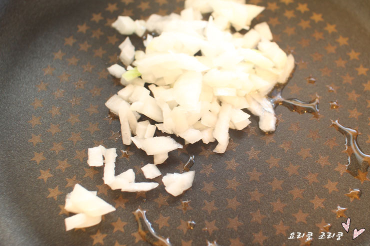 그리고 기름을 두른 팬에 다진양파를 넣고 살짝 투명해 질때까지 보까줍니다